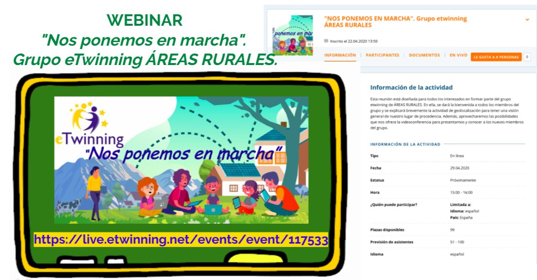 Próximo webinar "Nos ponemos en marcha" del Grupo eTwinning de Áreas Rurales, 29 de abril - Próximo webinar "Nos ponemos en marcha" del Grupo eTwinning de Áreas Rurales, 29 de abril - Dpto